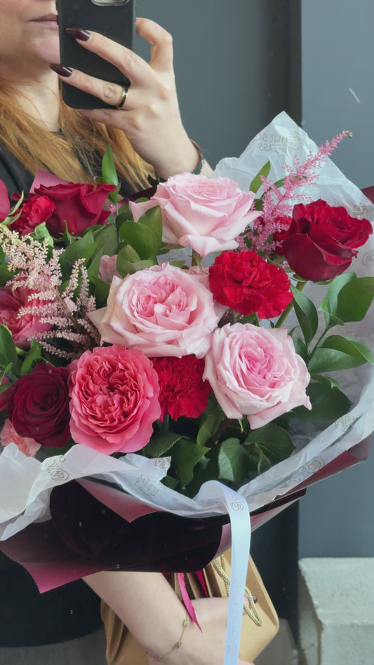 "Red and pink" bouquet