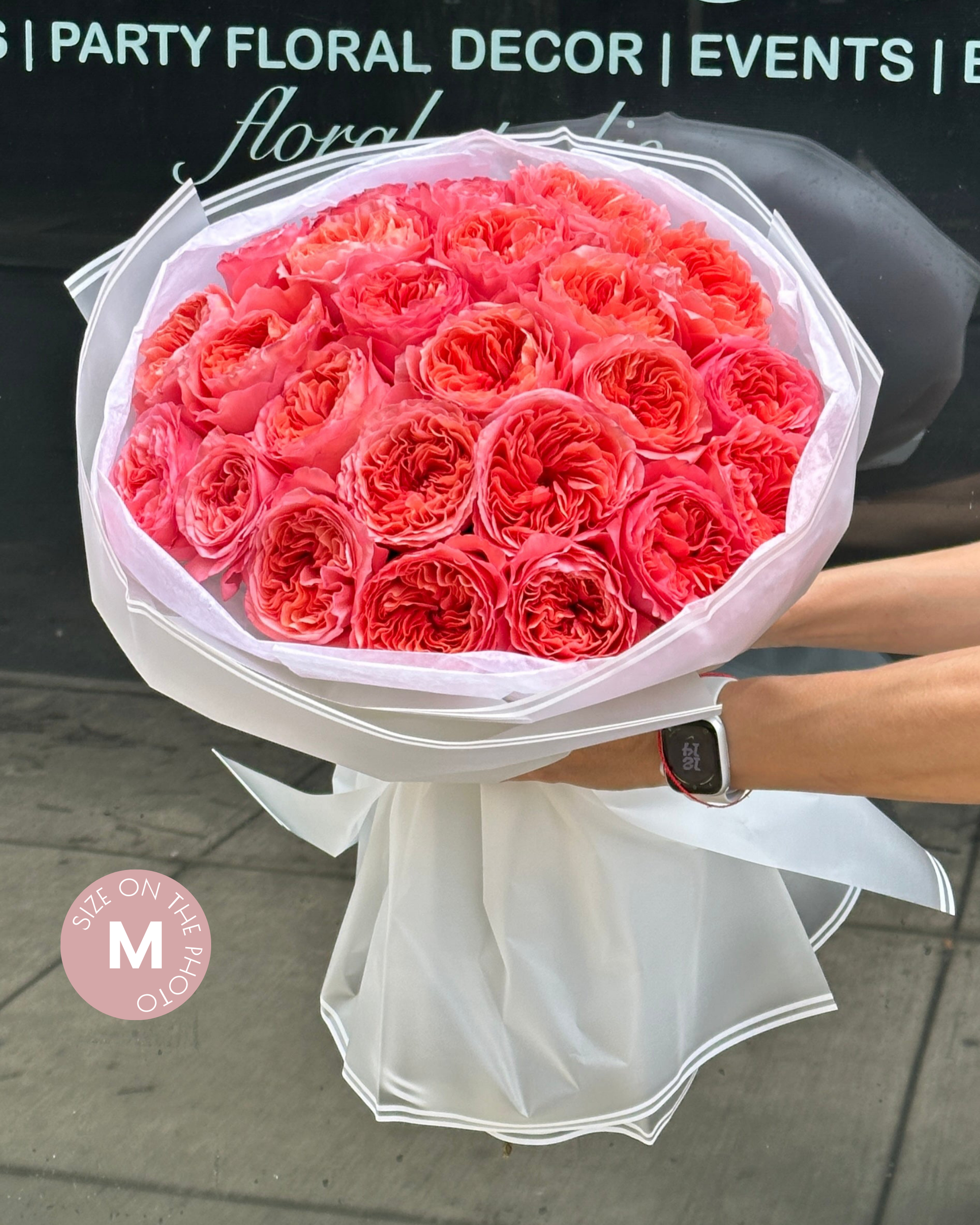Handcrafted in NYC by the floral artists at Awesome Blossom, each stem is carefully selected and arranged to create a luxurious visual impact. The coral hue offers a modern twist on the traditional rose bouquet - vibrant, joyful, and undeniably chic. Wrapped in signature paper and tied with satin ribbon, this bouquet is made to impress.